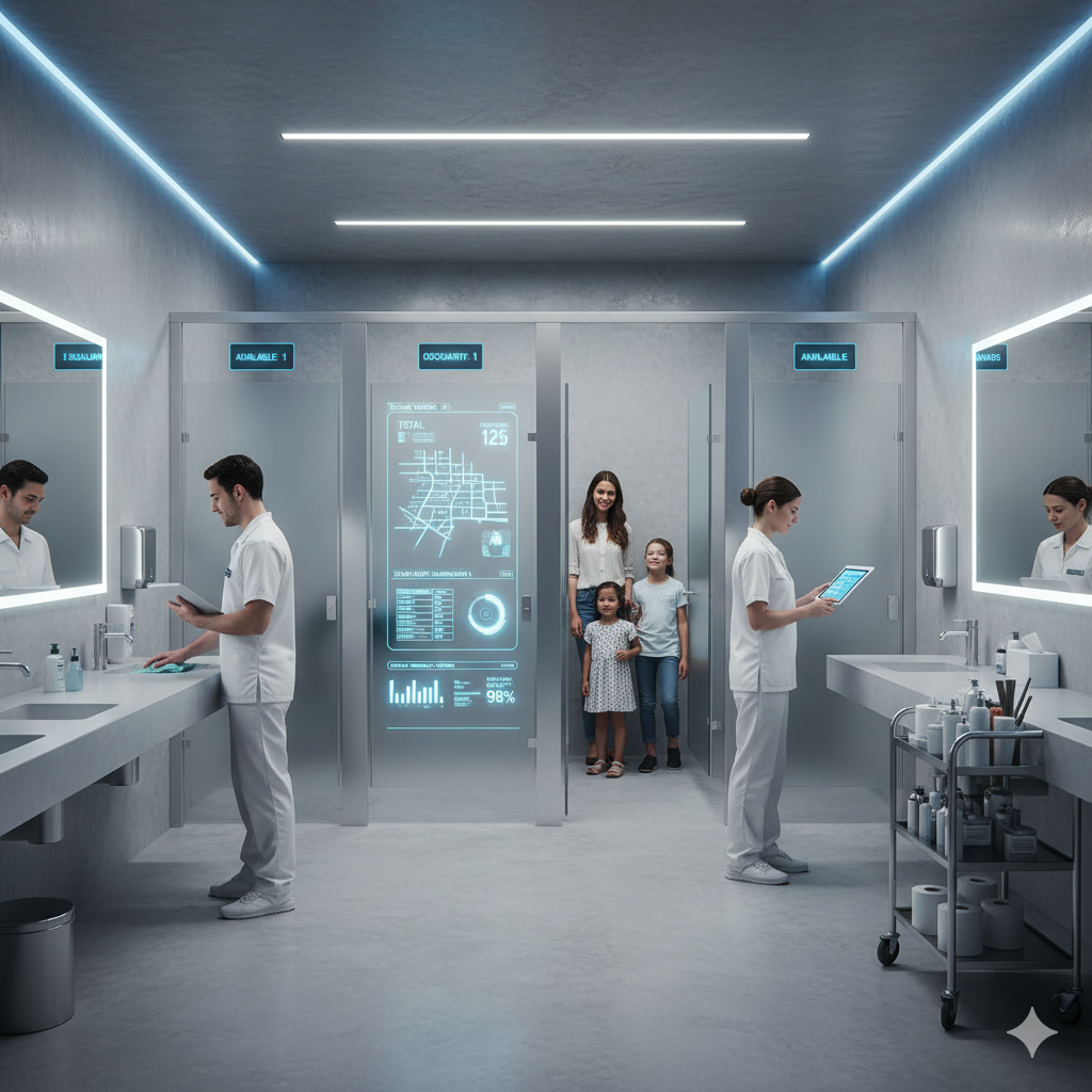 People counters are sensor-based devices that track the number of visitors entering restrooms. This data helps cleaning staff schedule their work based on actual usage, ensuring restrooms are cleaned more efficiently and hygienically.