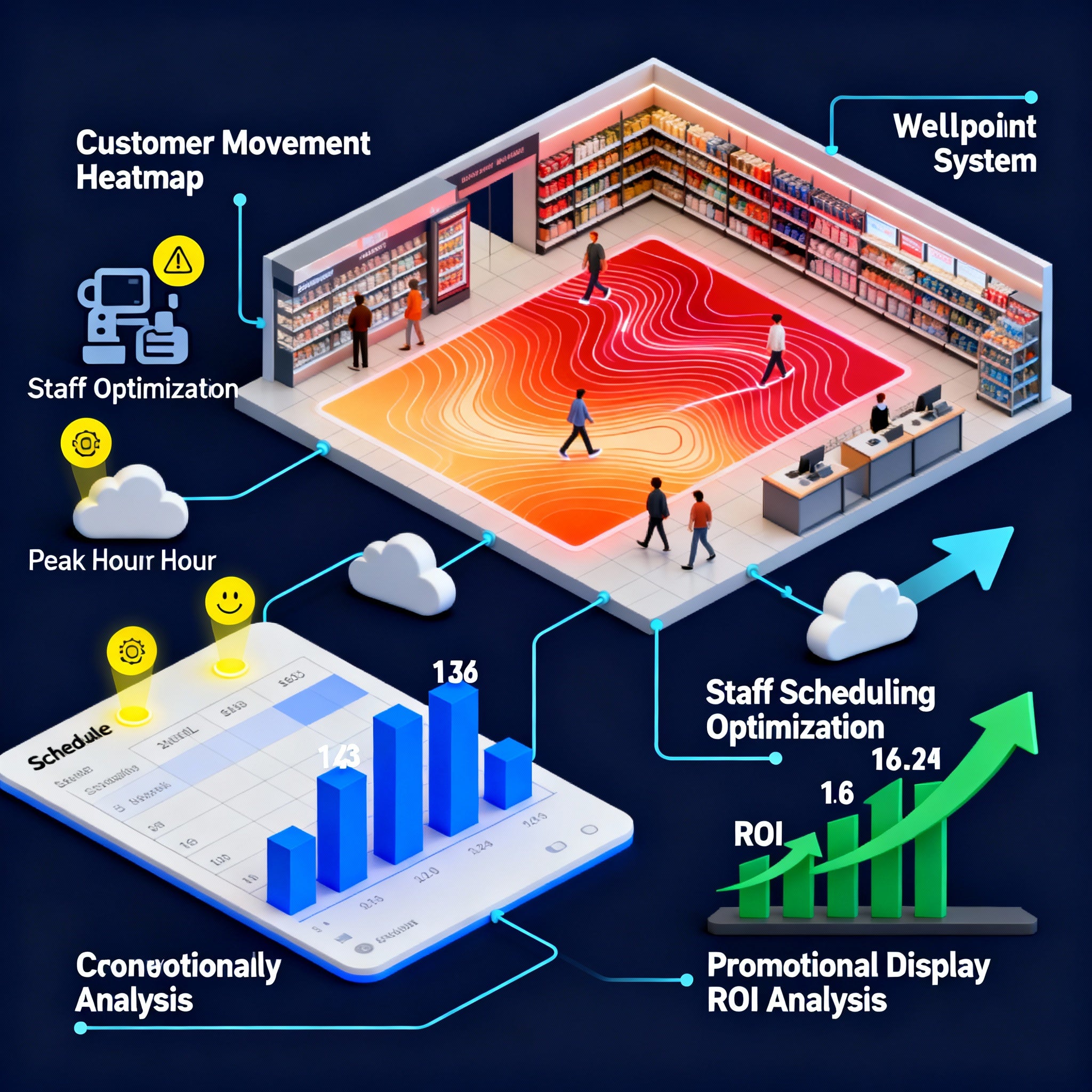 Stop guessing if your promotions work. Wellpoint provides real-time data on how customers move through your store, revealing which layouts and displays truly drive engagement. Use these insights to optimize product placement, measure marketing ROI, and design a store experience that boosts sales.