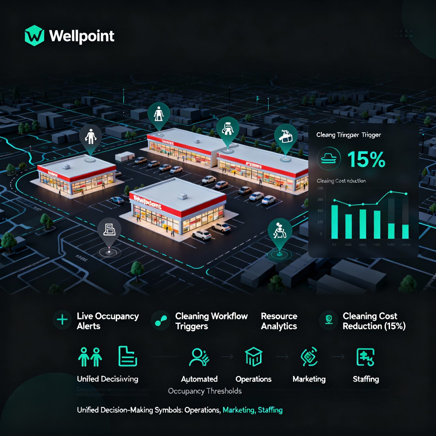 Gain a unified view of all your stores. Wellpoint provides chain-wide data to detect security risks and optimize staffing. Use real-time alerts and traffic analytics to cut costs, enhance security, and ensure consistent operations across every location.